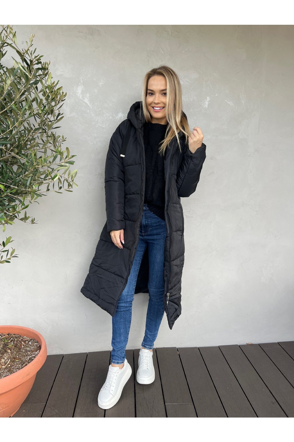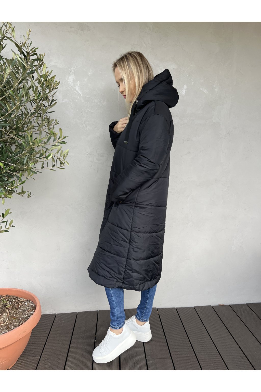 Dlouhá bunda s kapucí, ideální na lehkou zimu. Zapínání na zip, dostupná ve velikostech S M , L , XL. Není vypasovaná, má rovný střih.