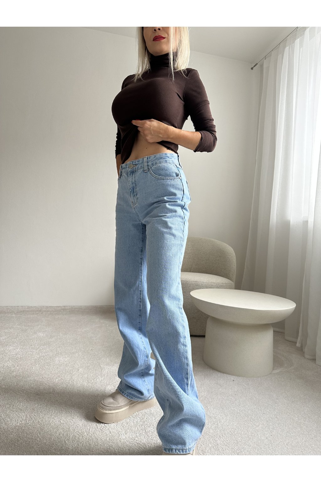 Džíny se širokými nohavicemi a středním pasem světle modré