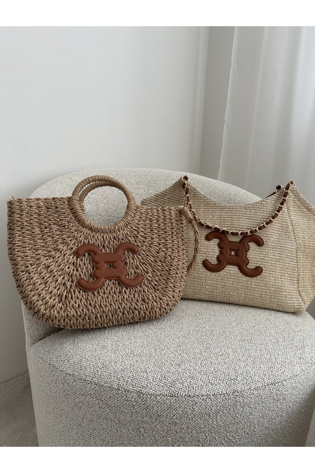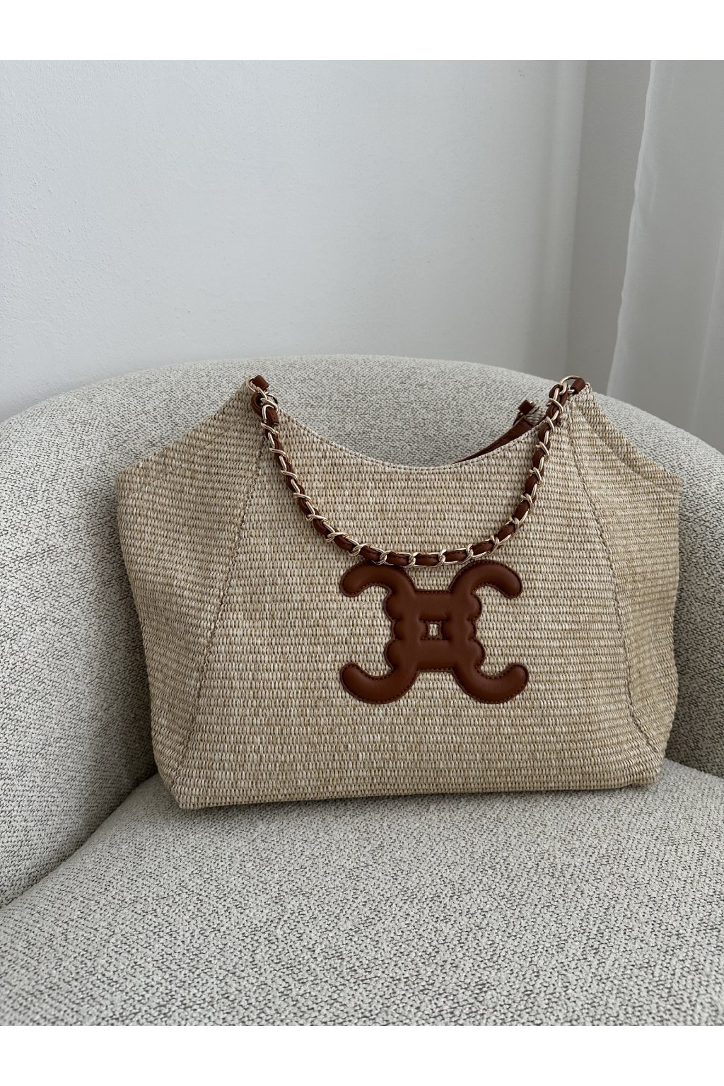 Luxusní kabelka v moderním designu připomínající slámu.