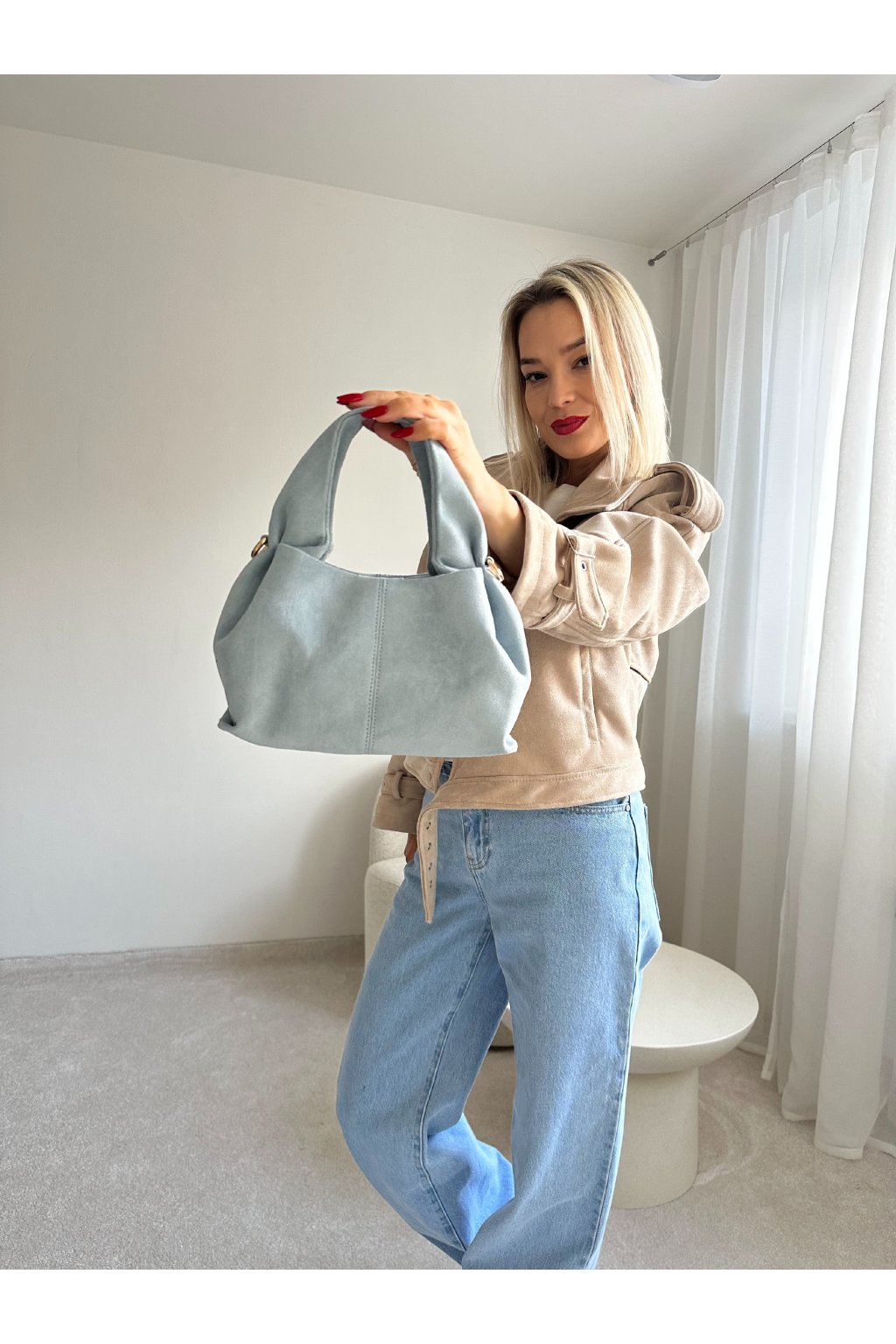 Semišová kabelka.