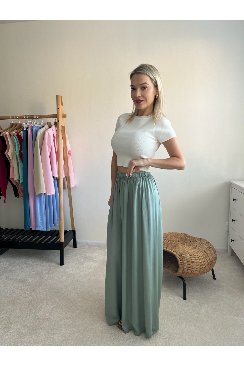 Trendy široké kalhoty ze 100% viskozy. Velmi pohodlný a prodyšný kousek ideální na jaro/léto. V pase je guma, hezky se přizpůsobí postavě. Nabízíme v šesti barvách. Doporučujeme na výšku do 165cm. Díky gumě v pase sednou na každou velikost.