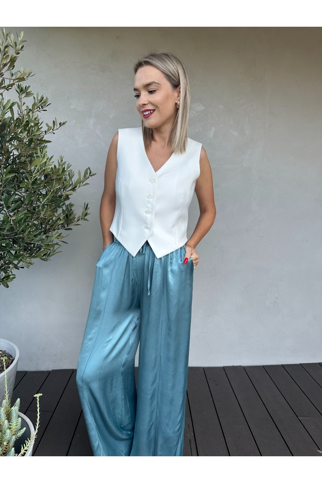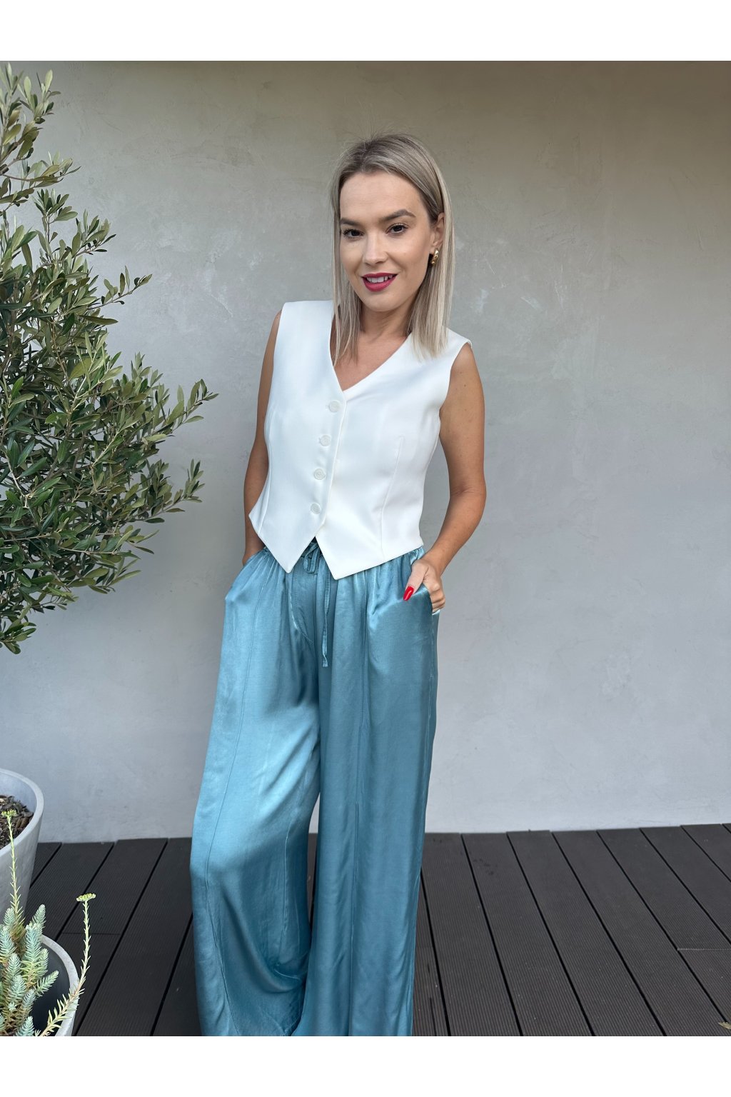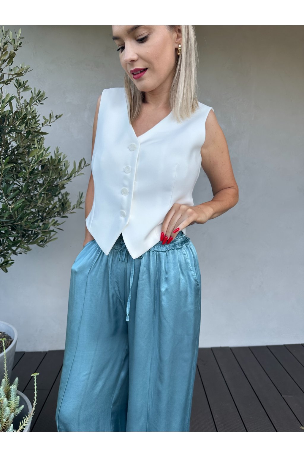 Aktuálně velmi trendy a především velmi pohodlné letní kalhoty z viskozy. V pase je guma, takže se přizpůsobí každé velikosti. Z boku kapsy. Nohavice mají délku 106cm, doporučujeme tedy na výšku od 165 cm do 175 cm.