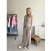 Stylový komplet z kvalitního materiálu. Komplet se skládá z trendy vesty a kalhot se širokými nohavicemi. Vesta s délkou do pasu, zapínání na knoflíčky. Kalhoty mají ze zadní strany gumu, takže se v pase hezky přizpůsobí postavě.