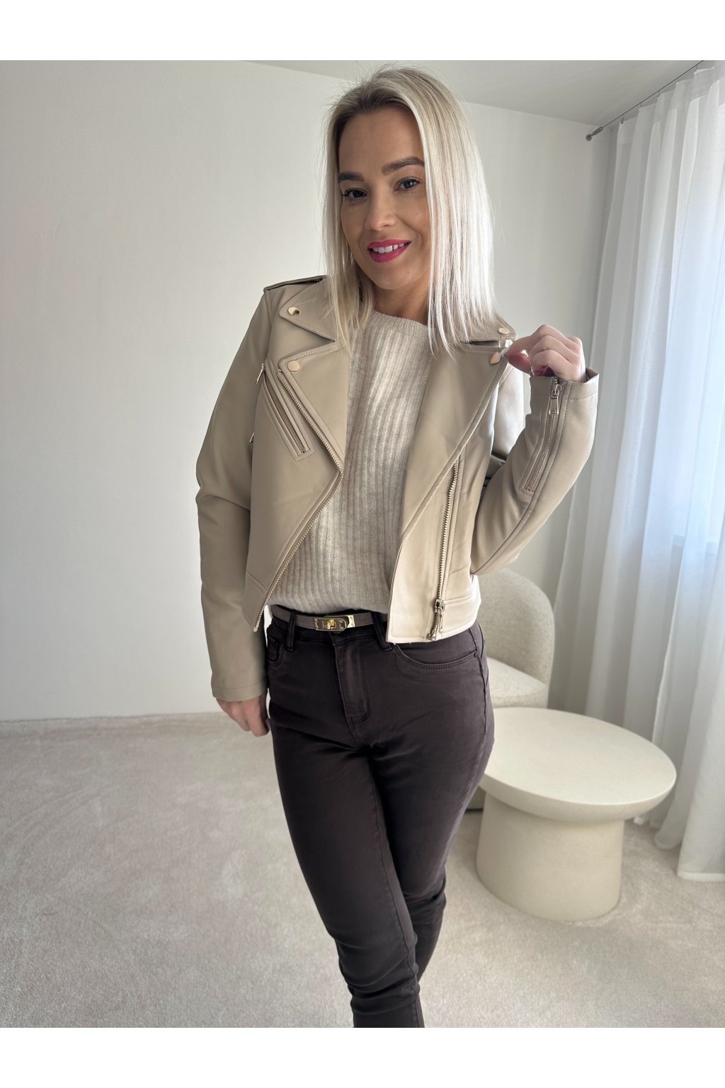 Křivák z eco kůže v trendy béžové barvě.
