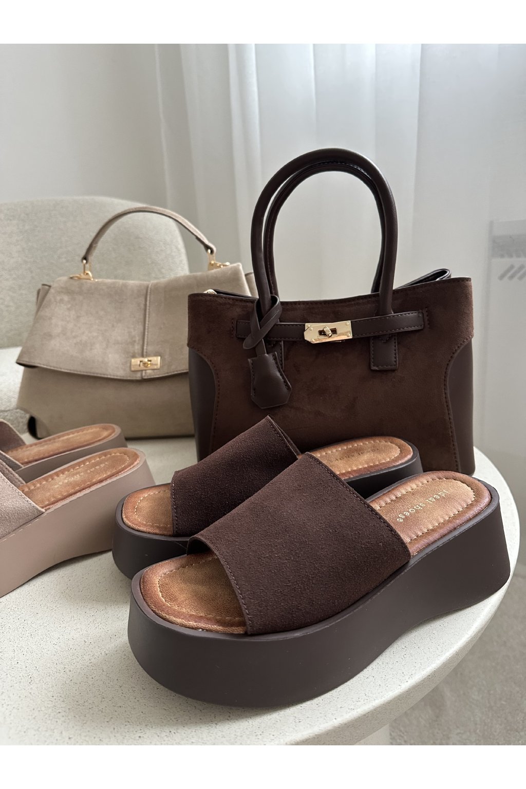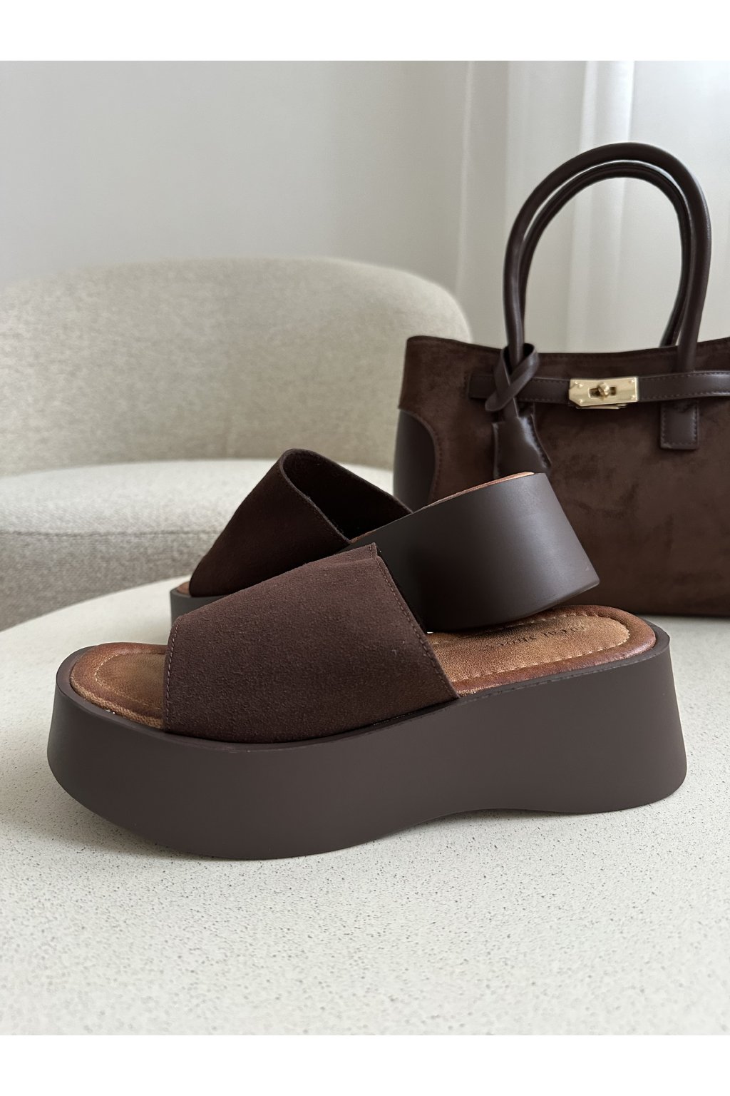 Nazouváky na vysoké platformě čokoládové