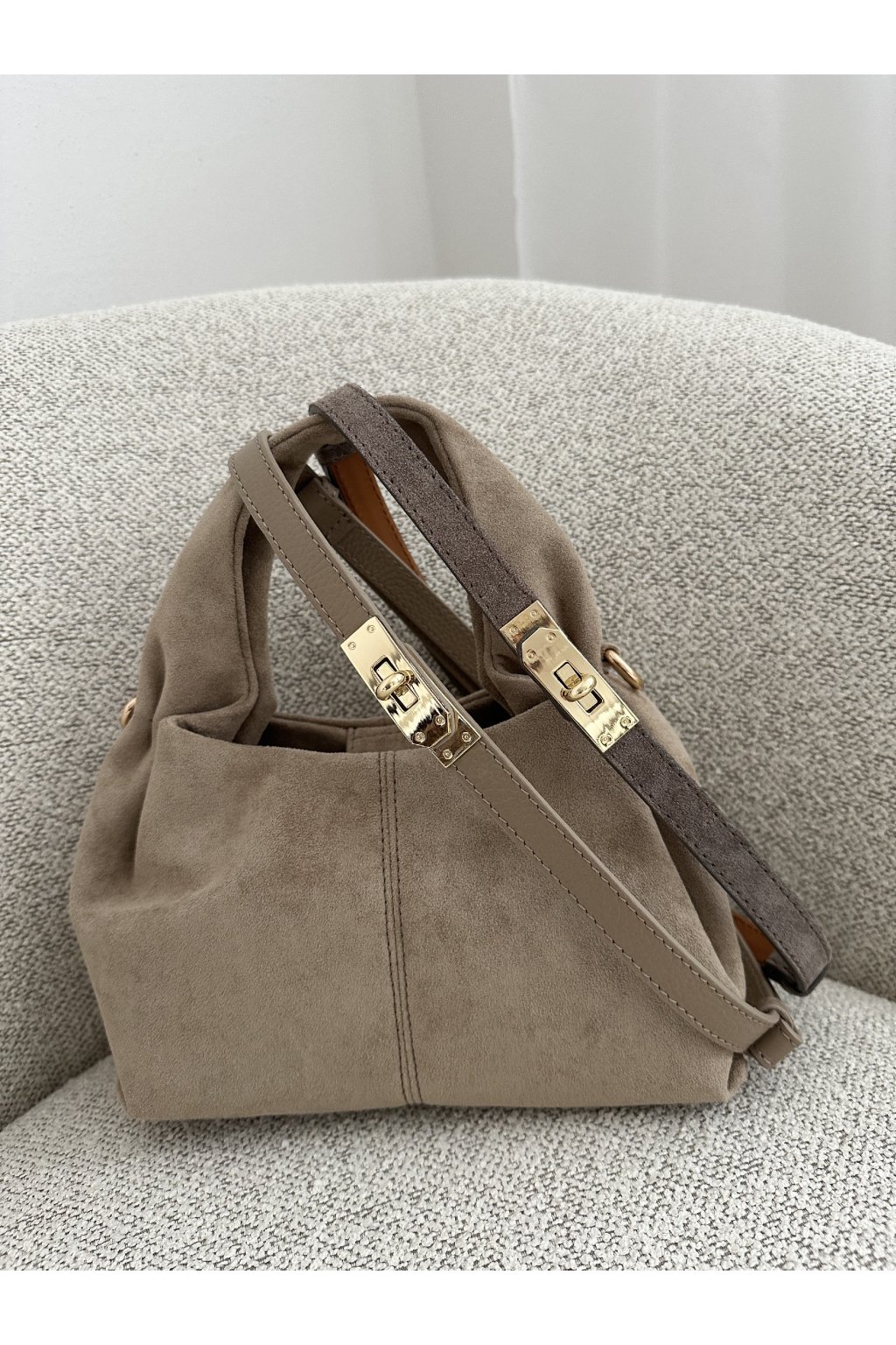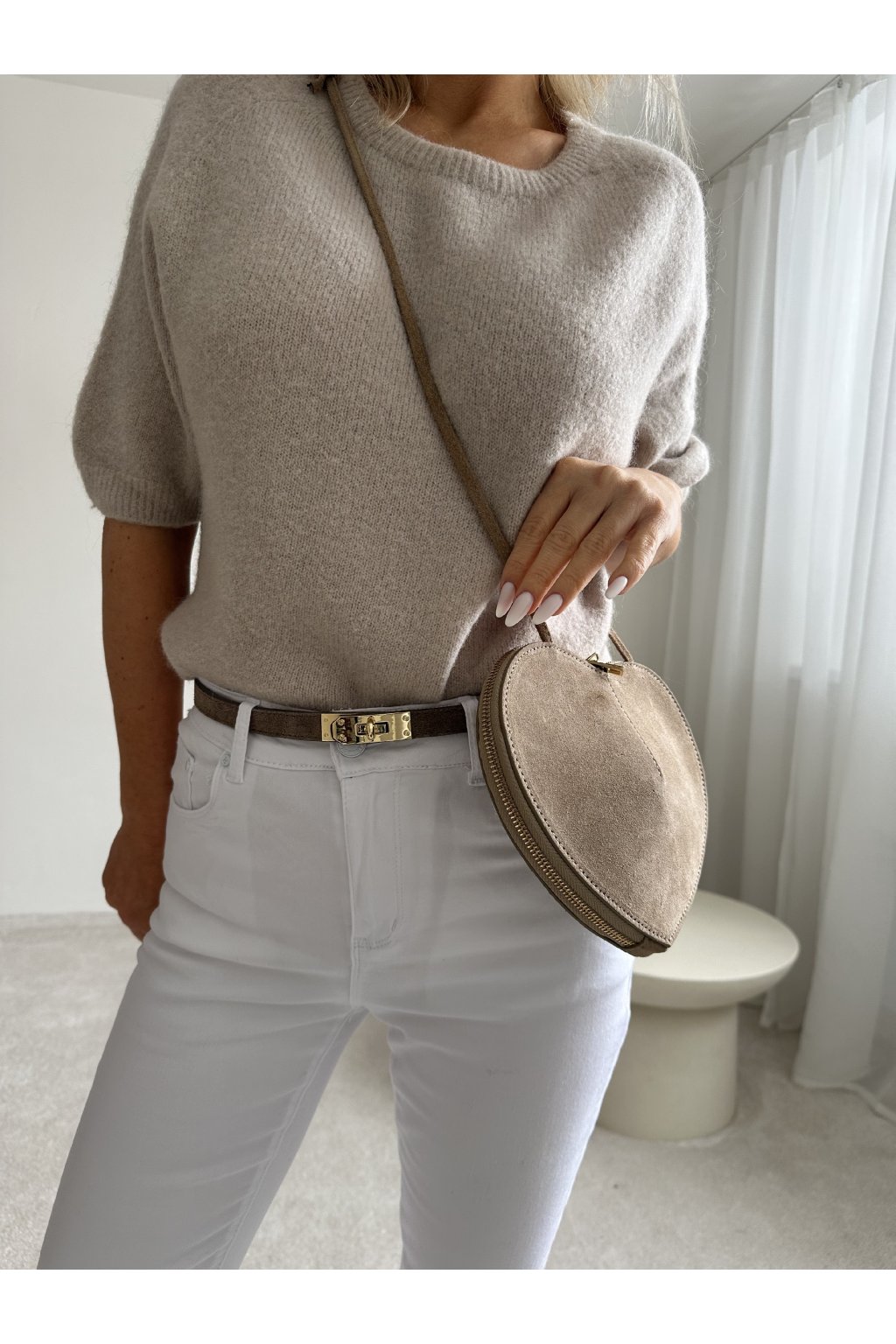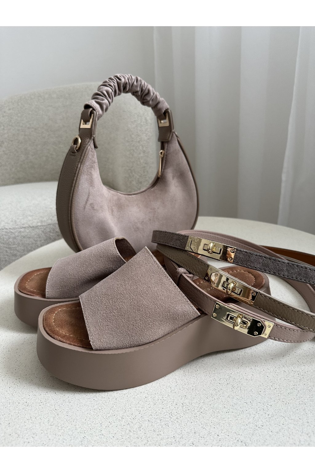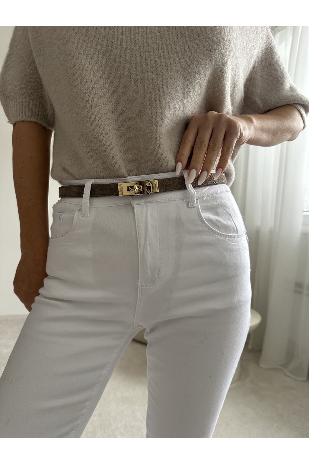 Opasek z broušené kůže šedo-béžový