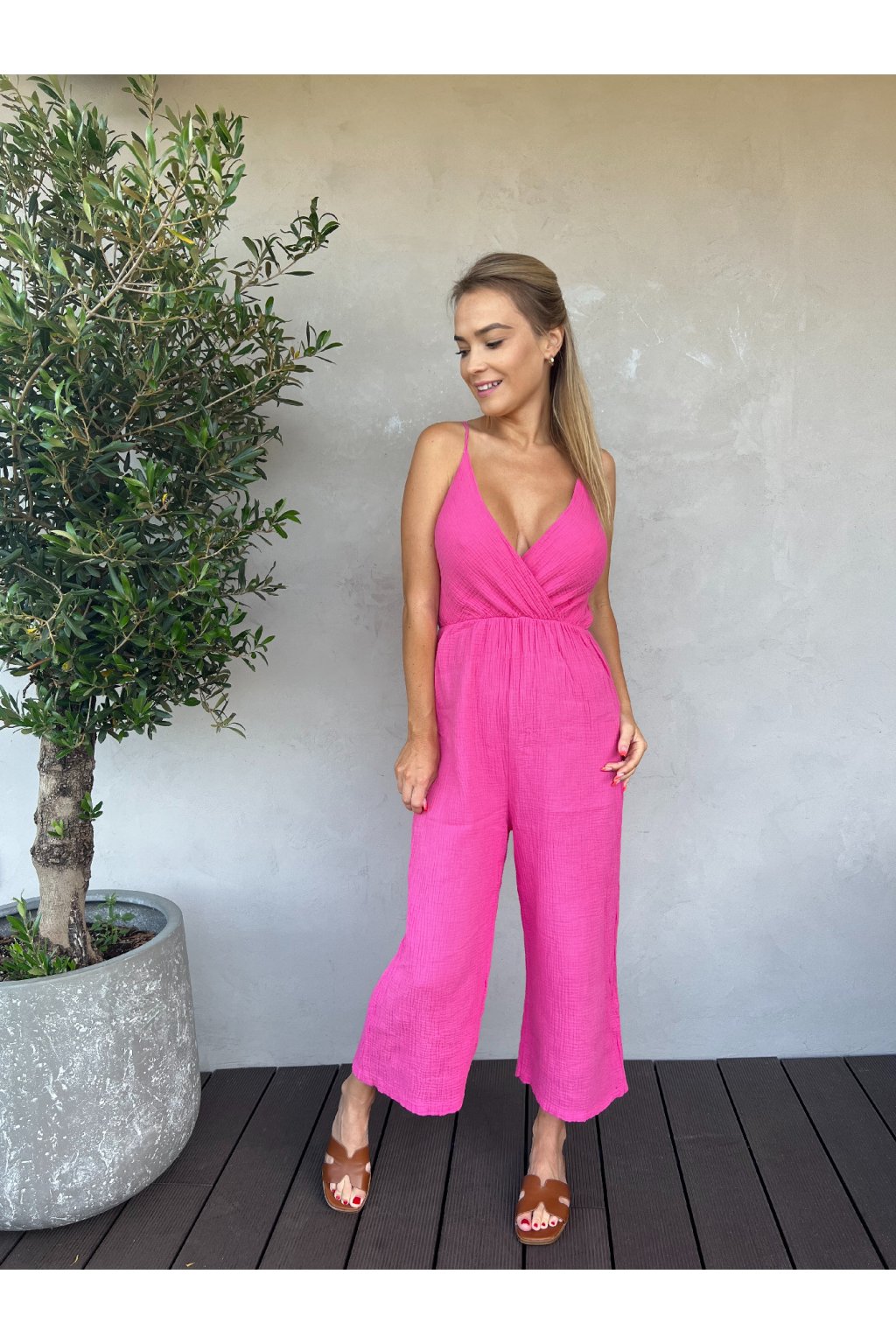 Overal je na ramínka - lze nastavit délku ramínek. V pase je guma, takže se pěkně přizpůsobí postavě. Nohavice jsou široké, mají 3/4 délku.
