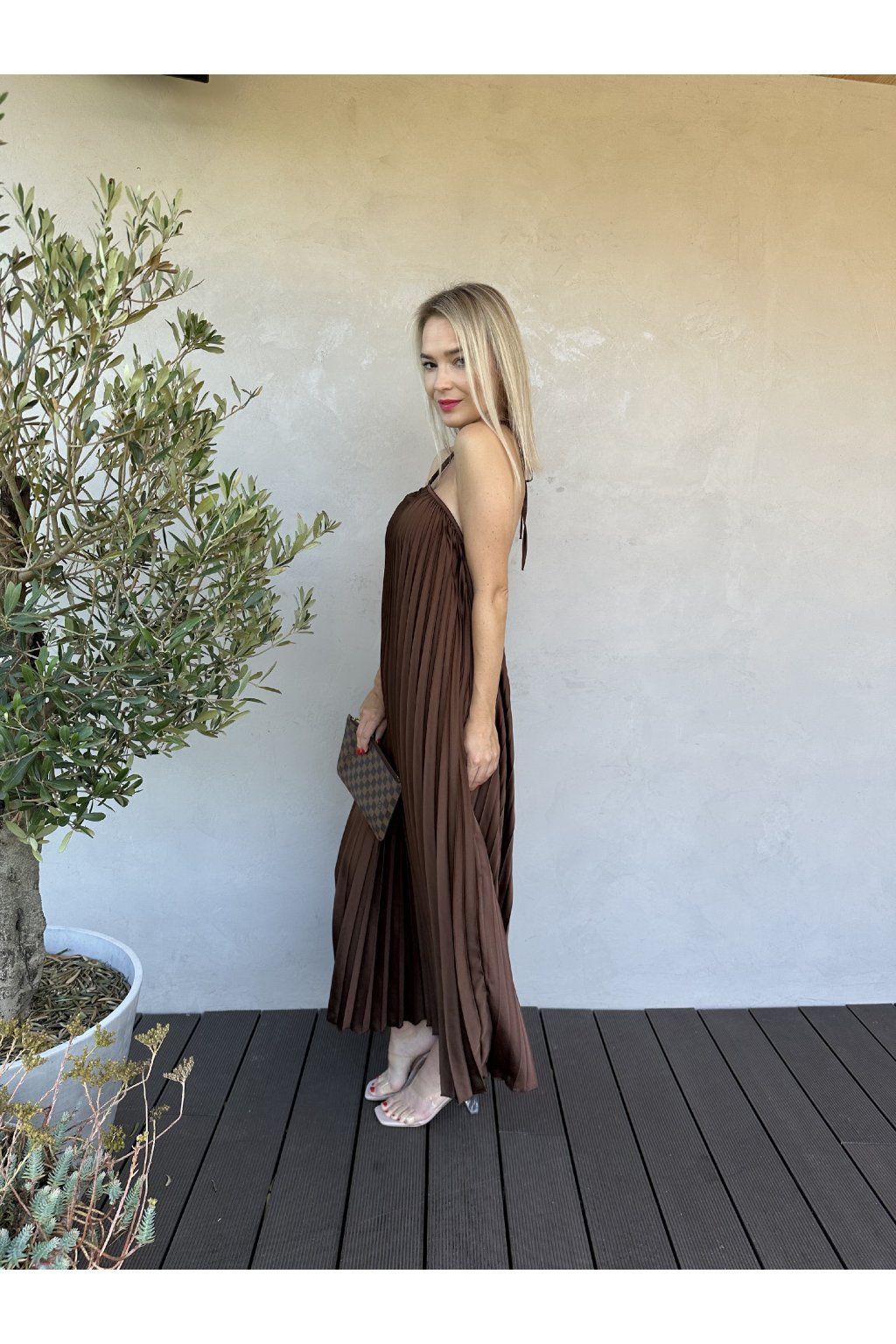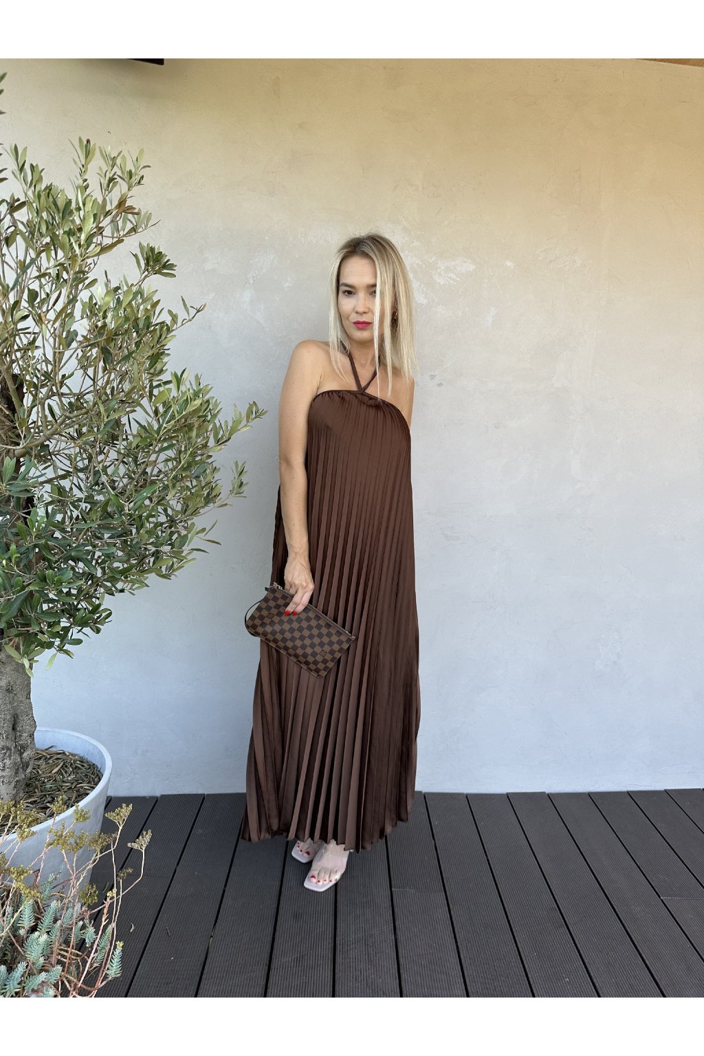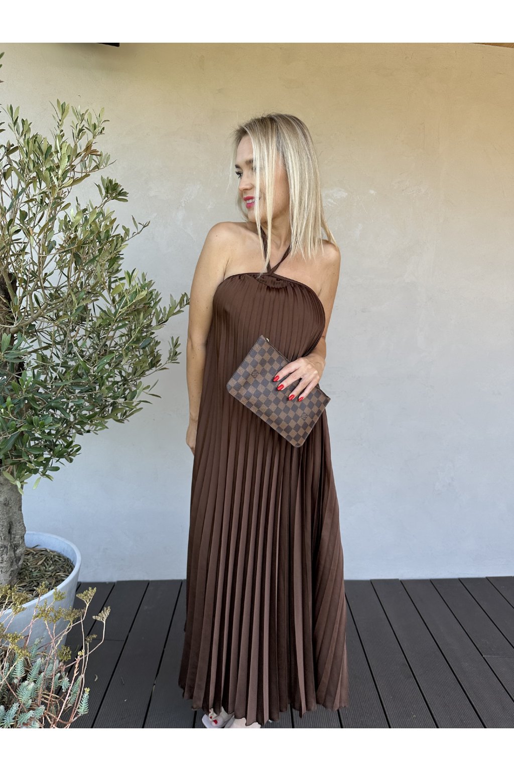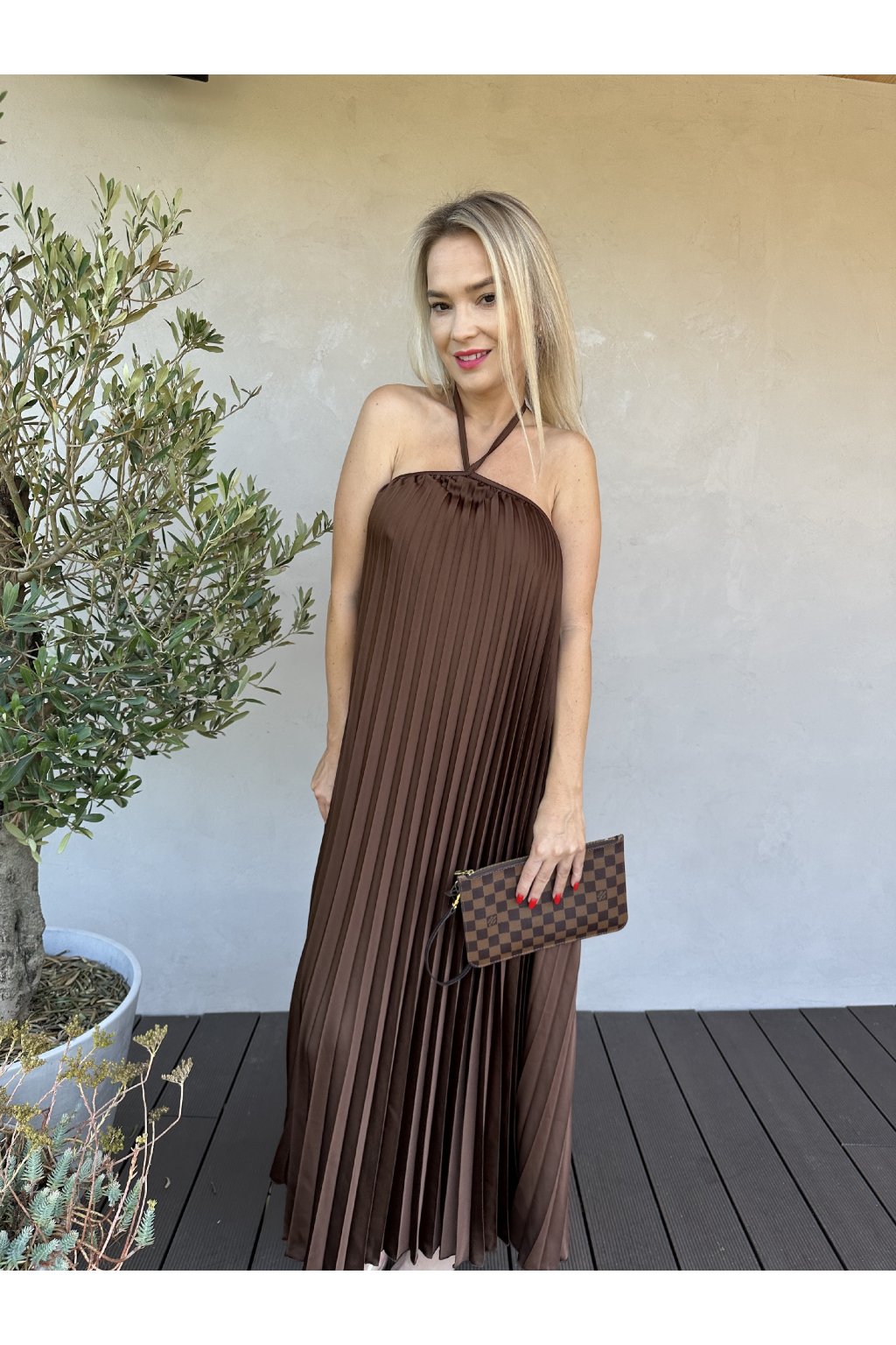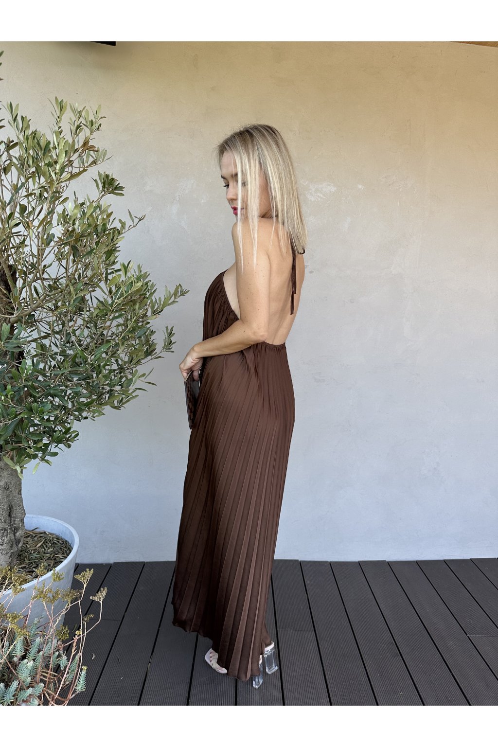 Plisované šaty s odhalenými zády.