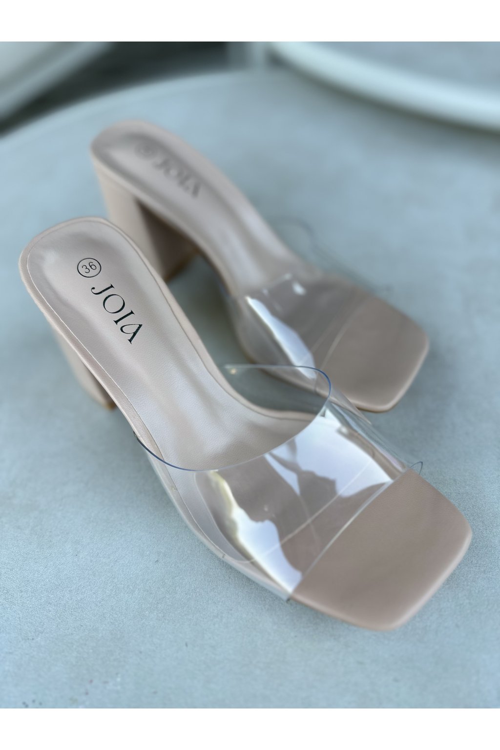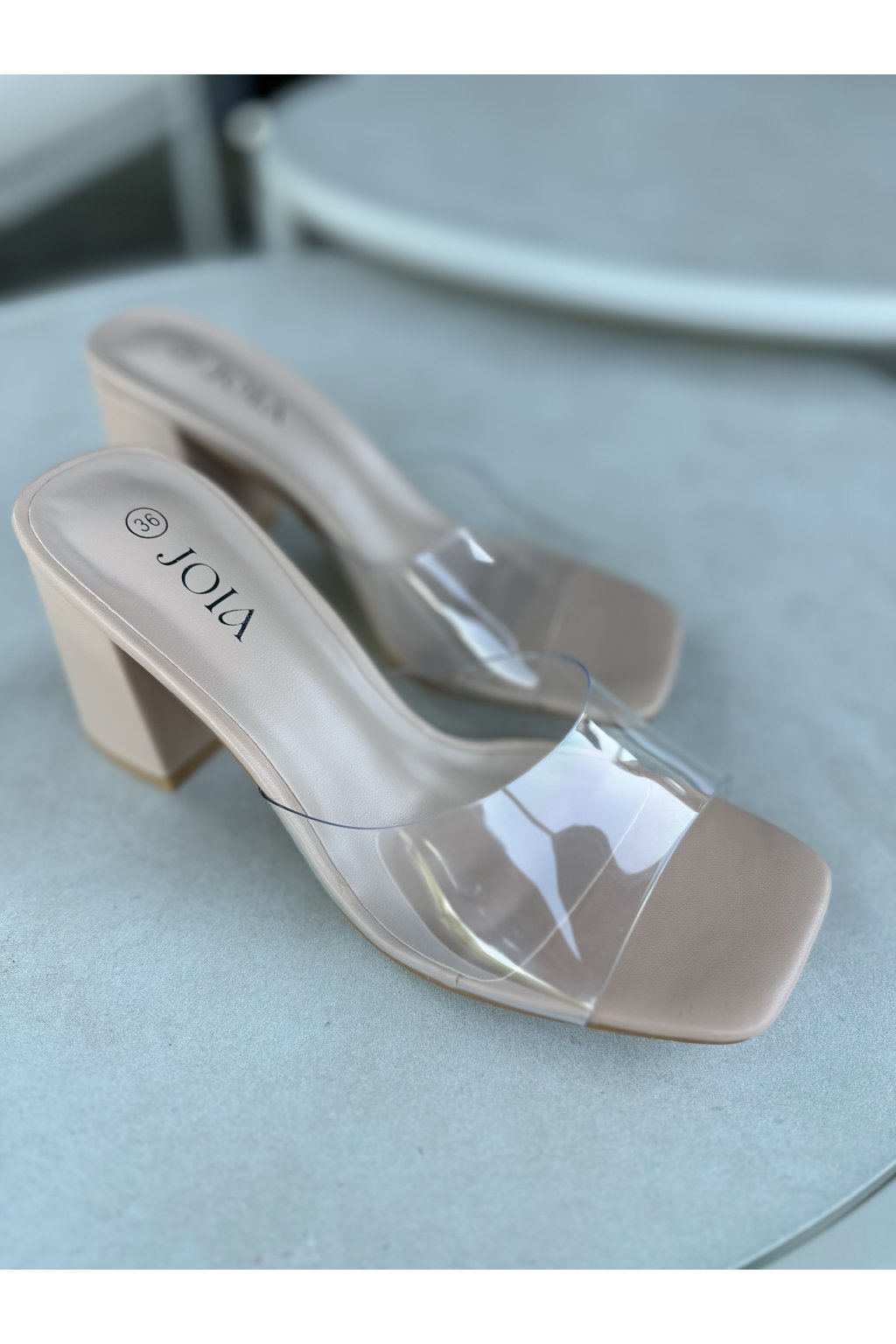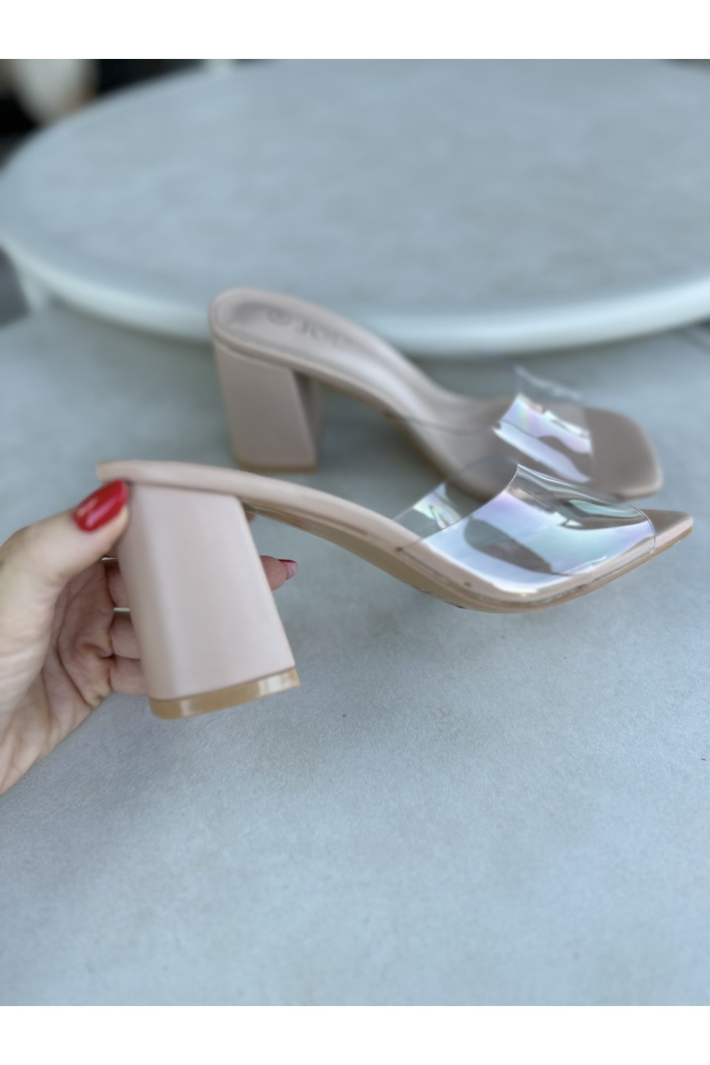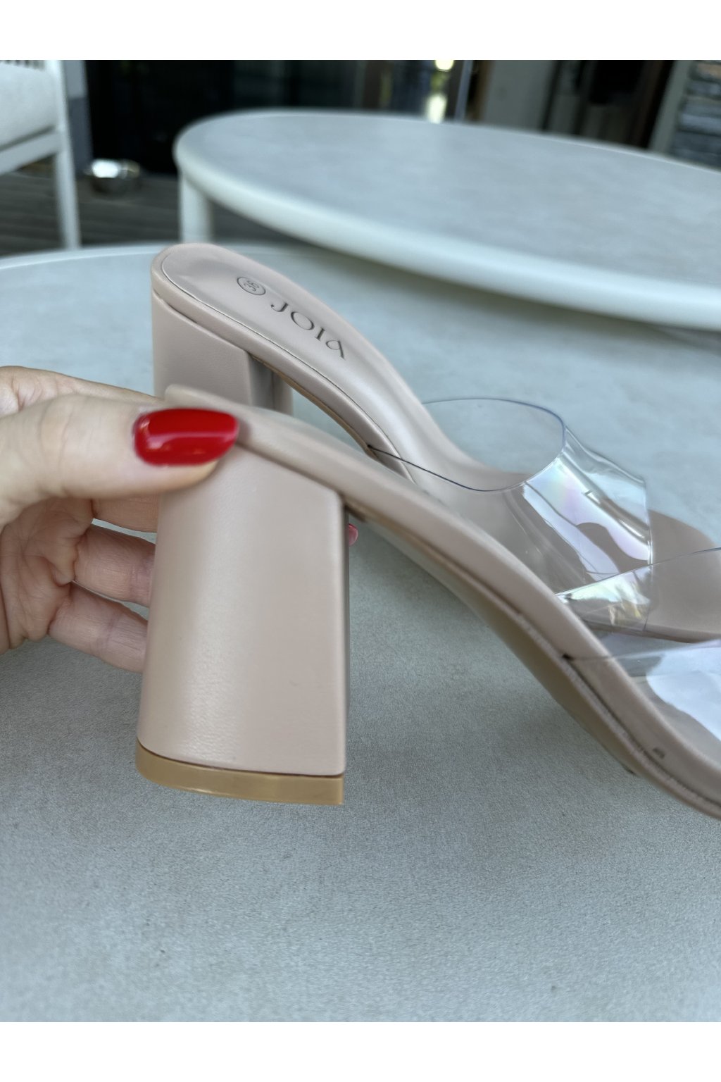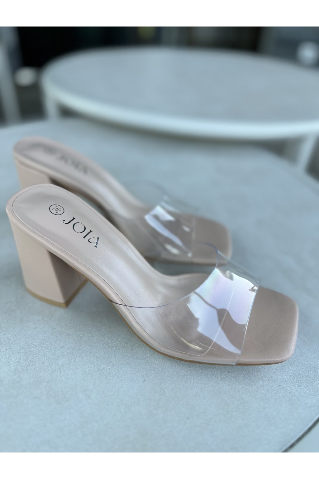 Nazouváky jsou velmi pohodlné, výška podpatku je 7,5 cm. Podpatek má béžový, koženkový vzhled.