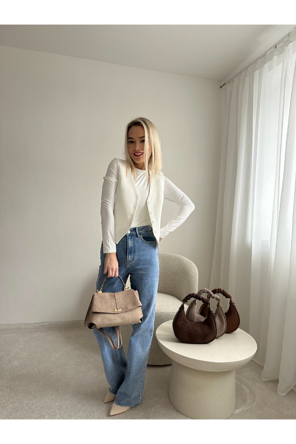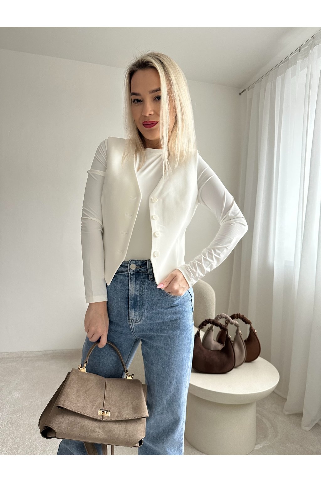 Aktuálně velmi trendy kousek, který využijete celoročně. Vesta má rovný střih, délka do pasu, zapínání na knoflíky. Lze ji nosit samostatně nebo v kombinaci s basic tričkem či košilí. Nabízíme ve velikosti S , M , L.